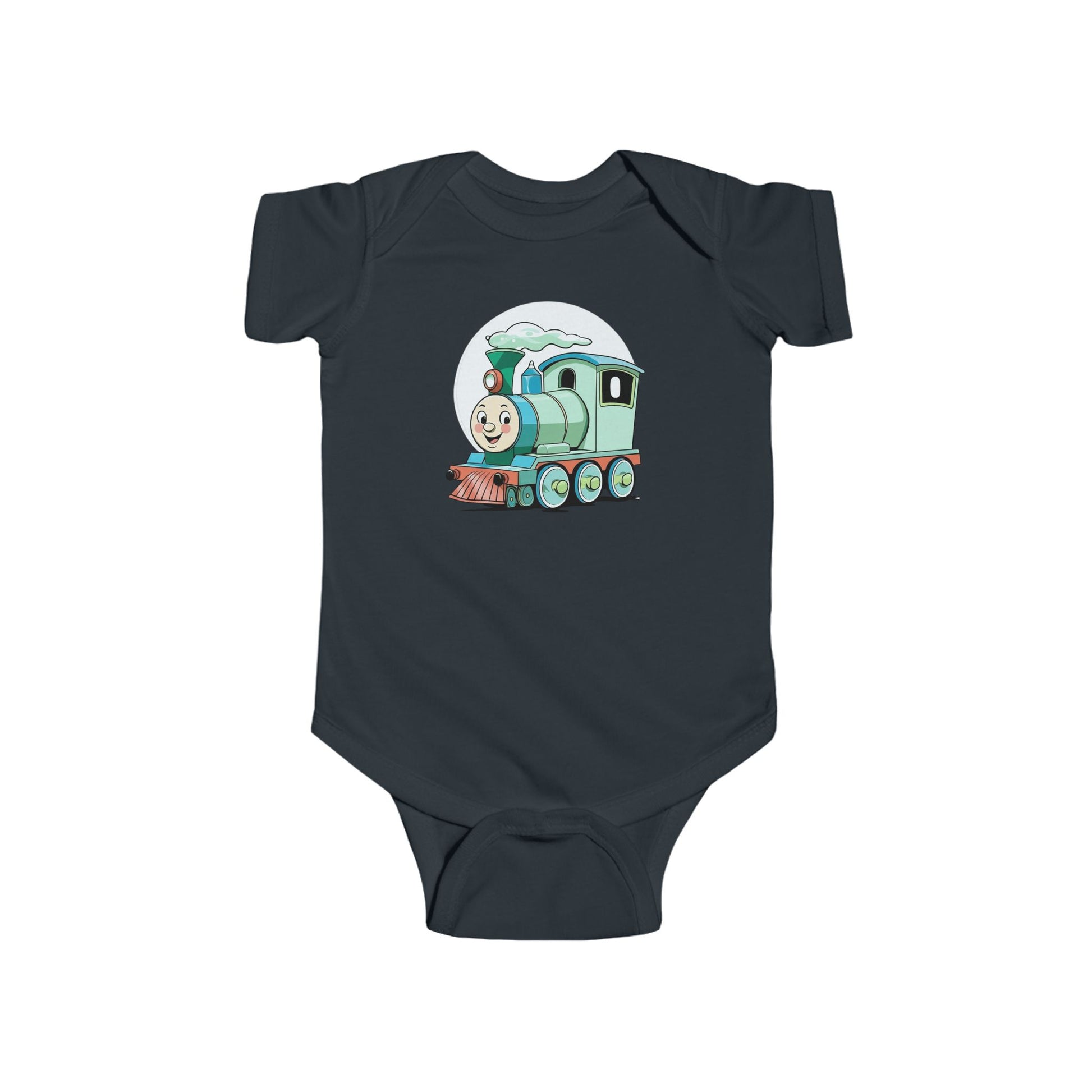 The Cho Choo Train Infant Bodysuit is a cute and colorful addition to your little one's wardrobe. Also available in different colors, this bodysuit is made from specially spun fibers that create a strong and smooth fabric, perfect for printing. The ribbed knit binding adds softness and freedom of movement, while the side seams help hold the garment's shape longer. With matching plastic snaps at the cross closure, this bodysuit is ideal for children and is REACH certified.