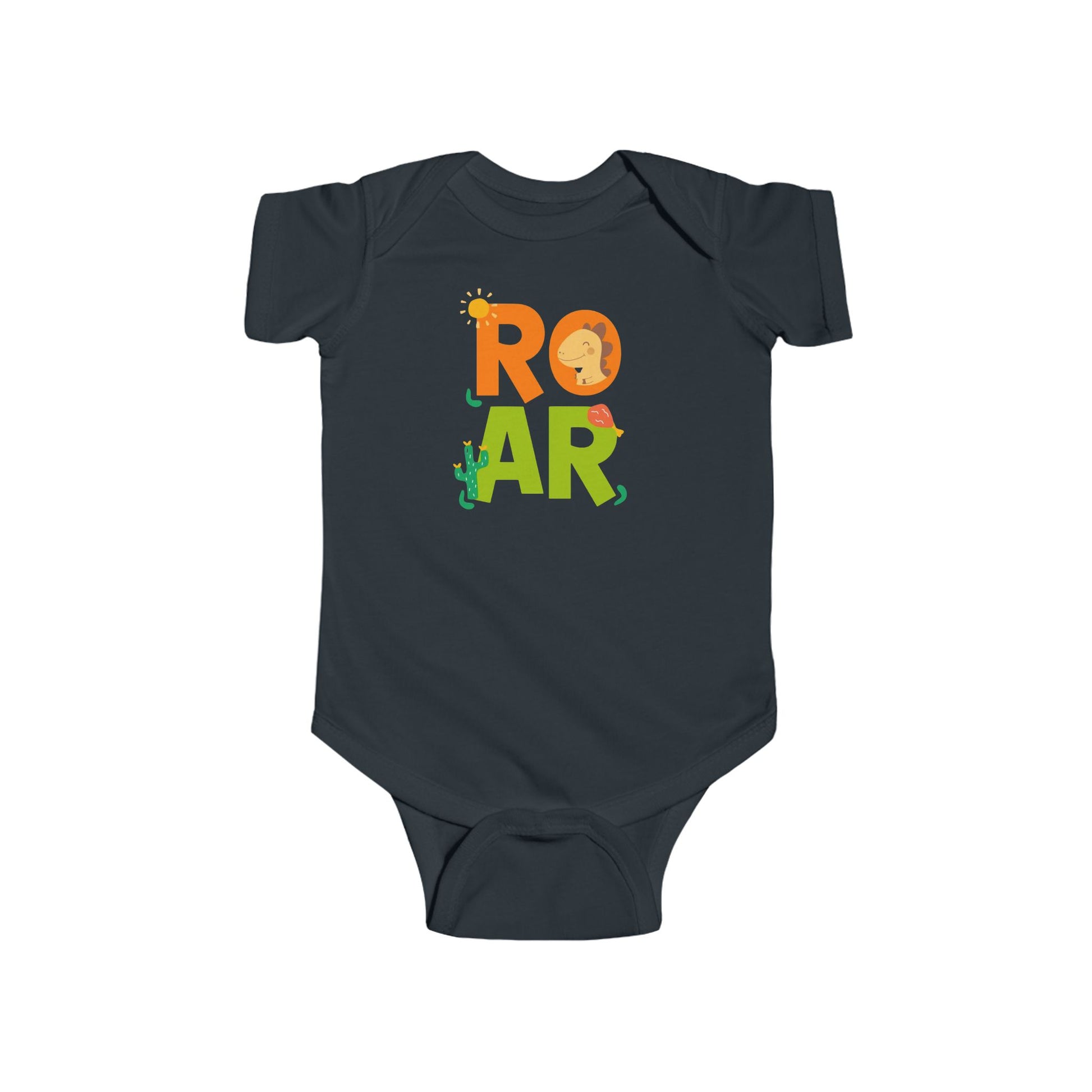 Roar-inspiring Infant Bodysuit that is perfect for little ones to wear and feel comfortable in. Ideal for babies and toddlers, this bodysuit is made from high-quality fabric, with side seams for added structure, ribbed knit binding for softness, and plastic snaps for easy closure. Great for everyday wear or as a special outfit for baby showers and birthdays.
