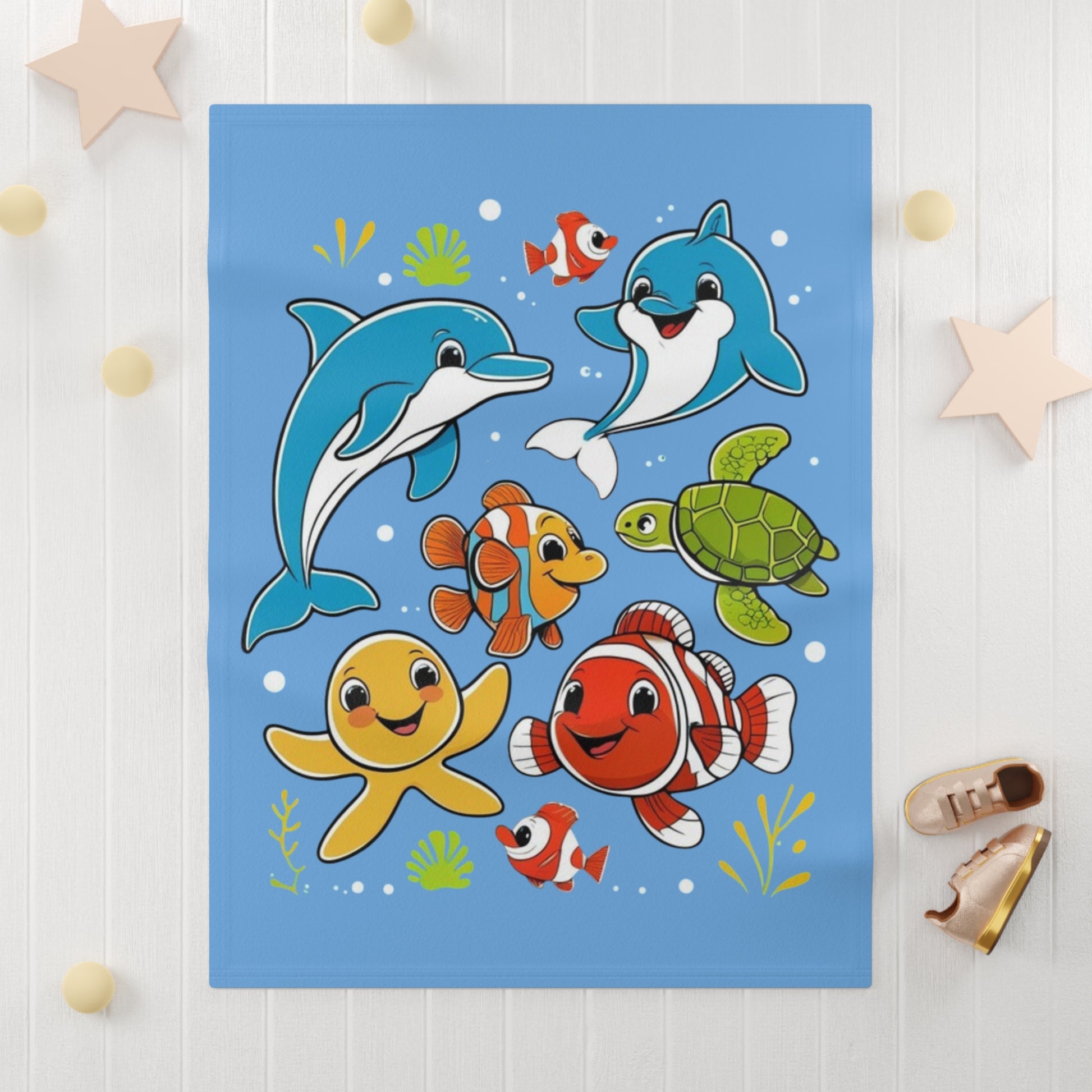 Sea Animal Baby Blanket, Nursery Decor - Blue