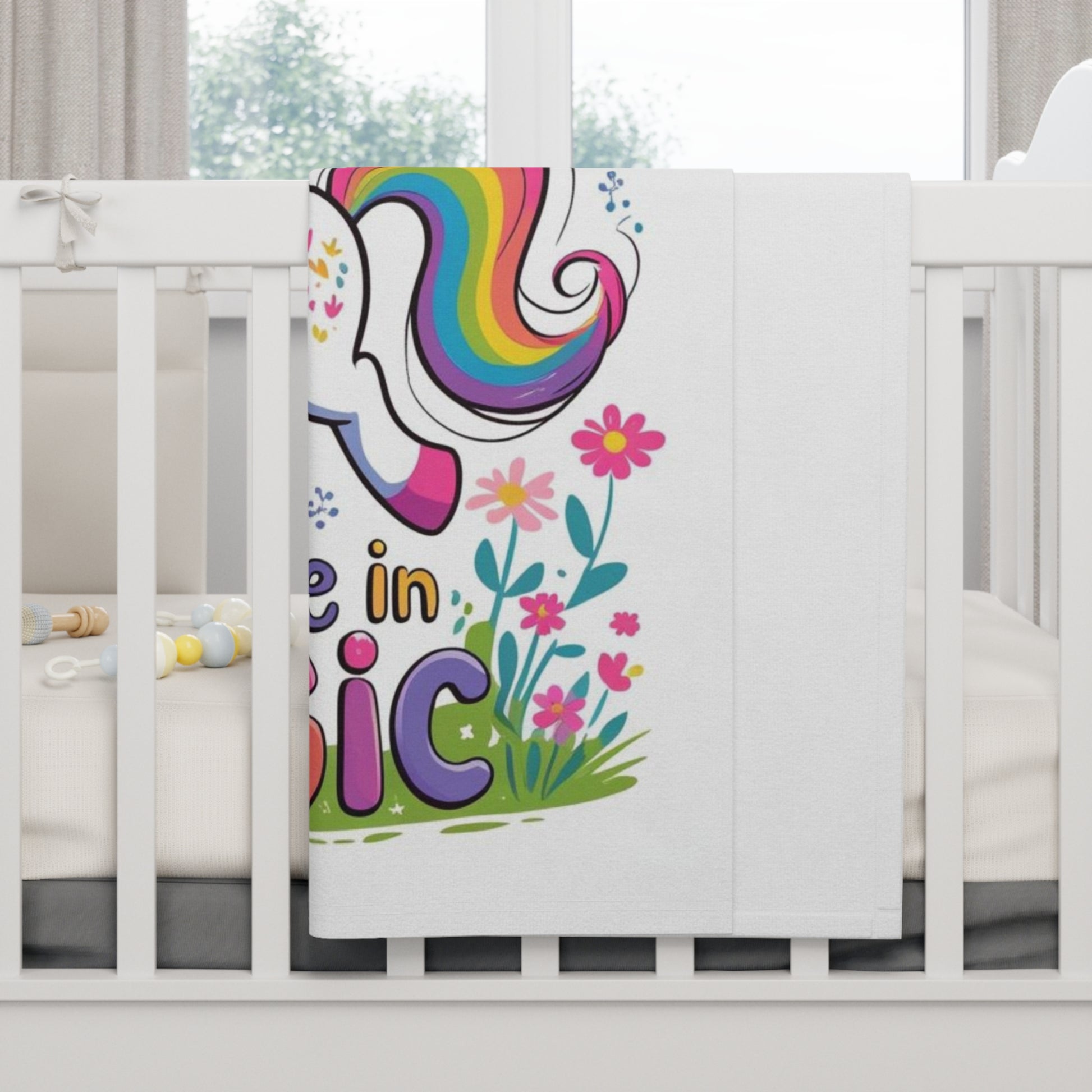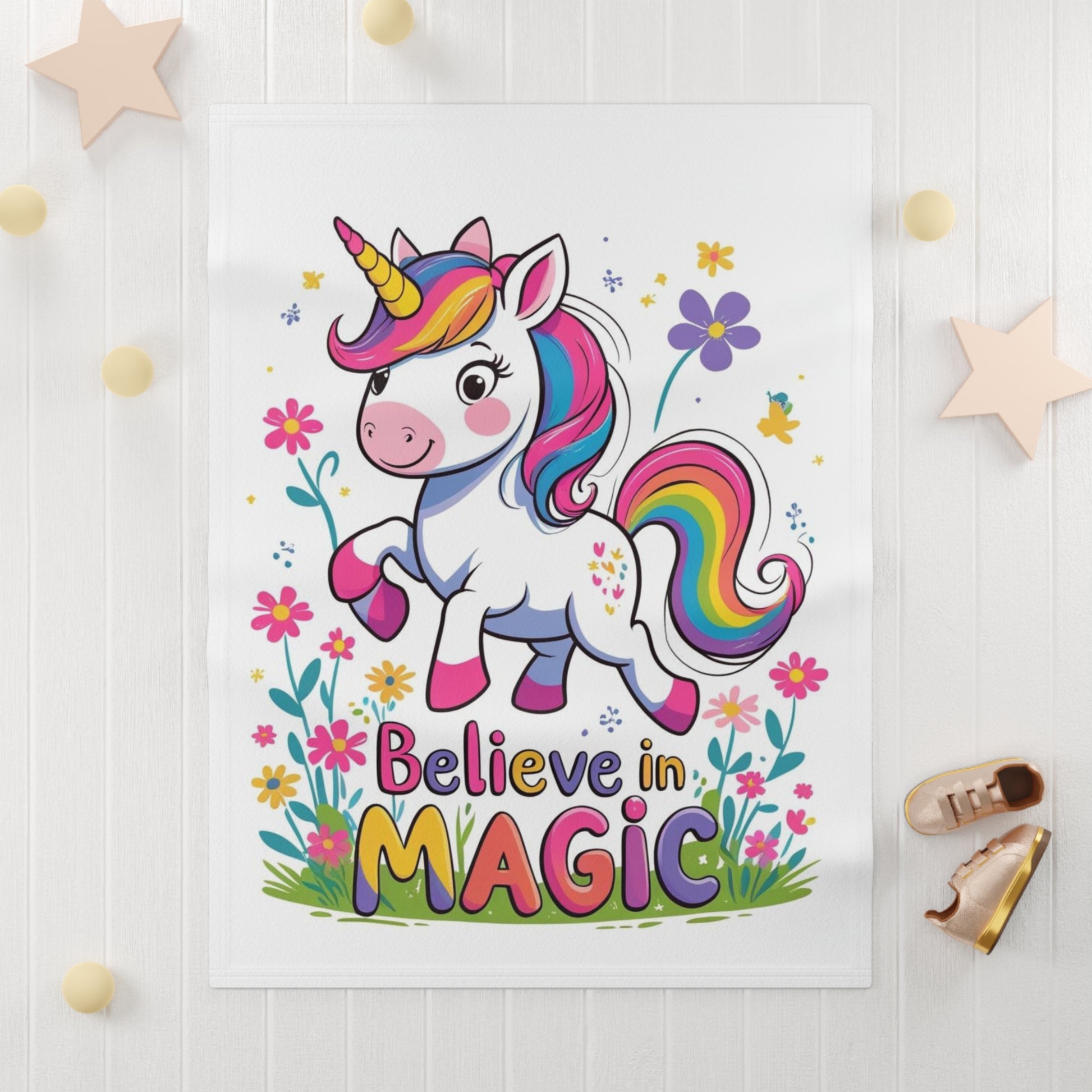 Introducing a cozy and magical fleece baby blanket, perfect for adding warmth and charm to your little one's nursery. The vibrant design features a whimsical unicorn surrounded by colorful flowers, creating an enchanting atmosphere that sparks imagination and joy. This blanket is not only a practical accessory for cuddles but also an adorable decorative piece for any child’s room. Ideal for baby showers, birthdays, or holiday gifting, this blanket is a thoughtful choice for caring parents, grandparents, or anyone looking to celebrate a special occasion with warmth and style. Let this blanket be a comforting companion during bedtime stories and playtime adventures!