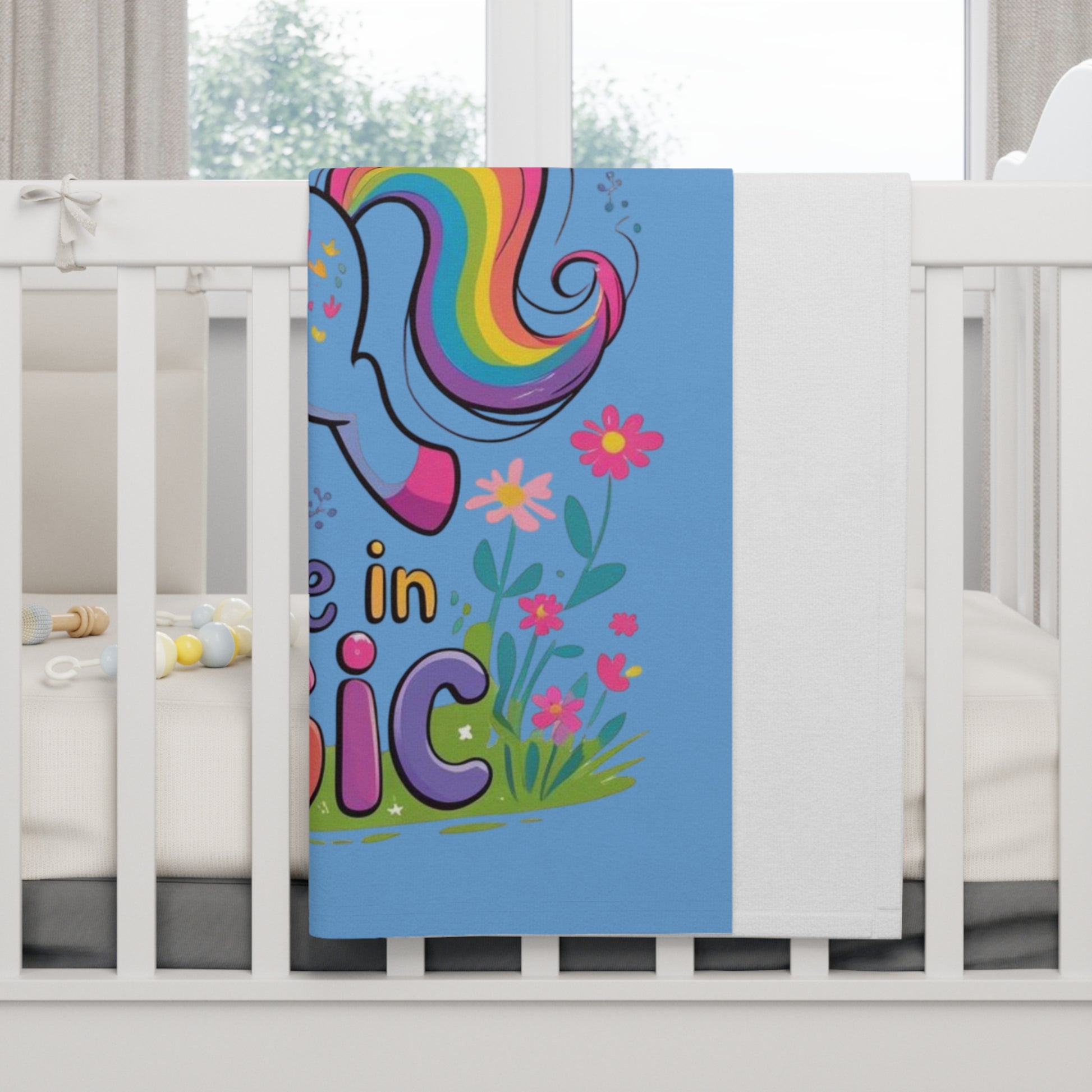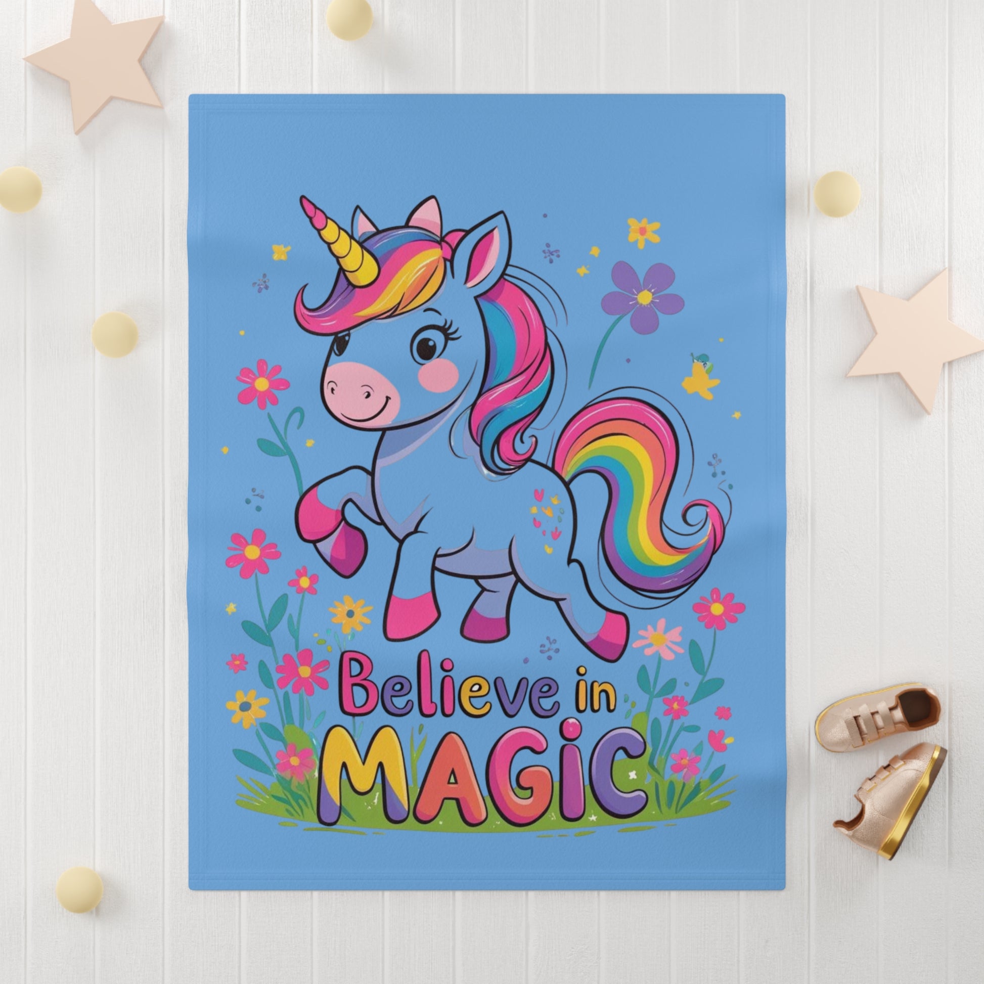 Introducing a cozy and magical fleece baby blanket, perfect for adding warmth and charm to your little one's nursery. The vibrant design features a whimsical unicorn surrounded by colorful flowers, creating an enchanting atmosphere that sparks imagination and joy. This blanket is not only a practical accessory for cuddles but also an adorable decorative piece for any child’s room. Ideal for baby showers, birthdays, or holiday gifting, this blanket is a thoughtful choice for caring parents, grandparents, or anyone looking to celebrate a special occasion with warmth and style. Let this blanket be a comforting companion during bedtime stories and playtime adventures!