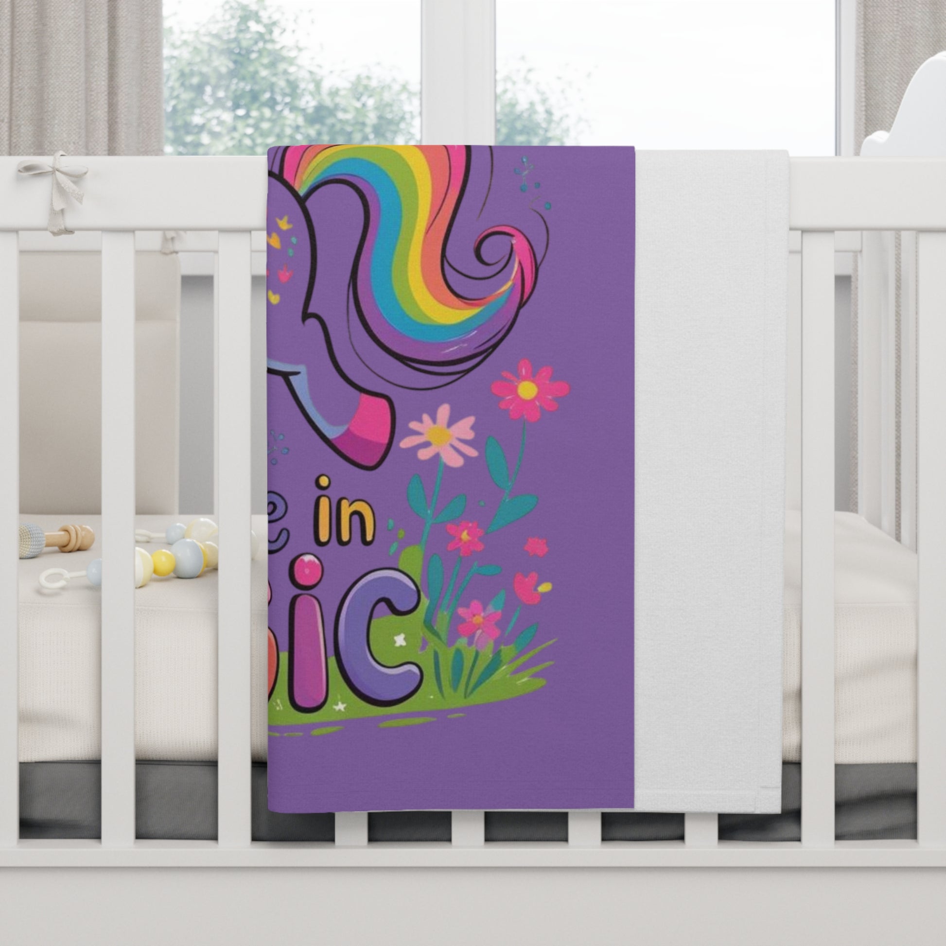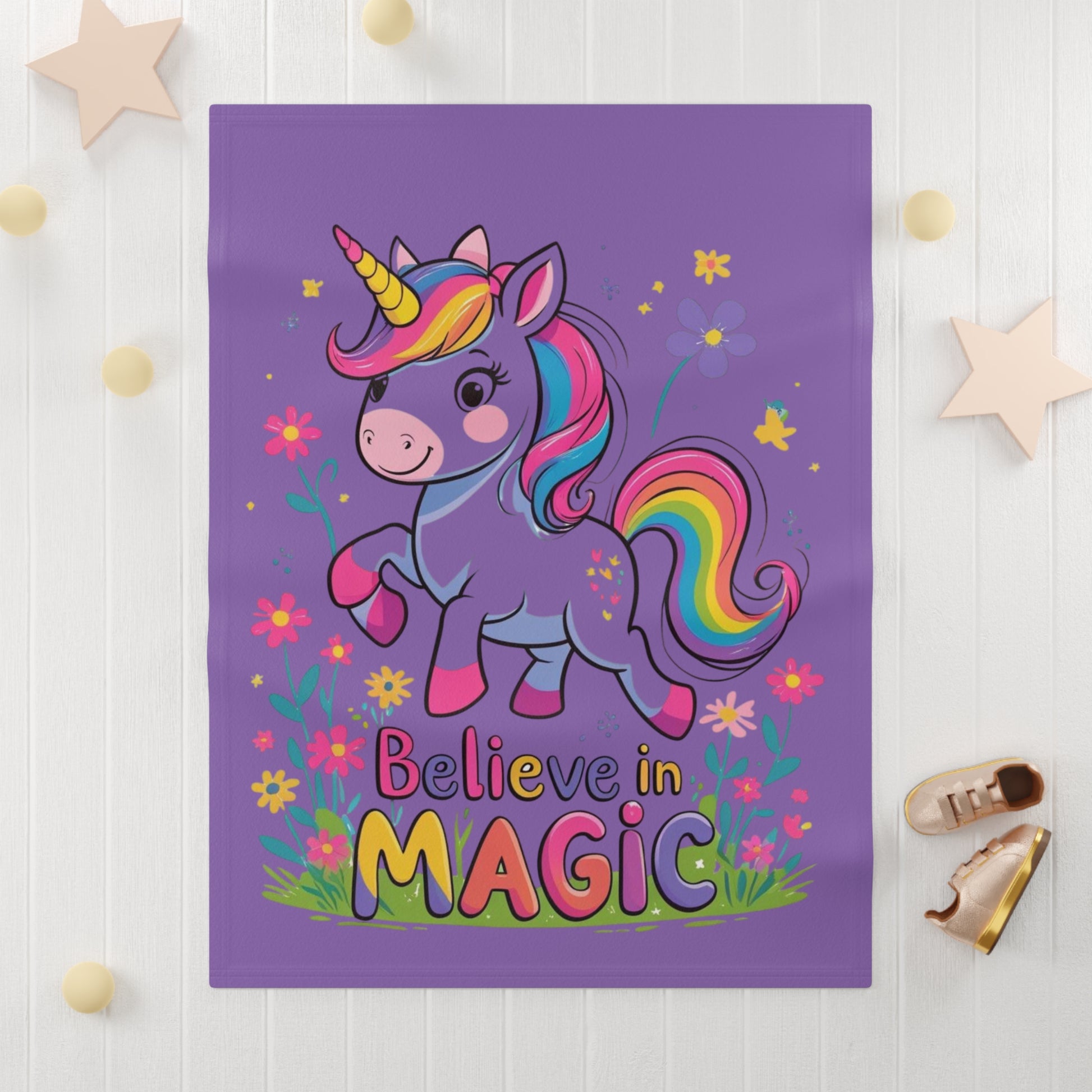 Introducing a cozy and magical fleece baby blanket, perfect for adding warmth and charm to your little one's nursery. The vibrant design features a whimsical unicorn surrounded by colorful flowers, creating an enchanting atmosphere that sparks imagination and joy. This blanket is not only a practical accessory for cuddles but also an adorable decorative piece for any child’s room. Ideal for baby showers, birthdays, or holiday gifting, this blanket is a thoughtful choice for caring parents, grandparents, or anyone looking to celebrate a special occasion with warmth and style. Let this blanket be a comforting companion during bedtime stories and playtime adventures!