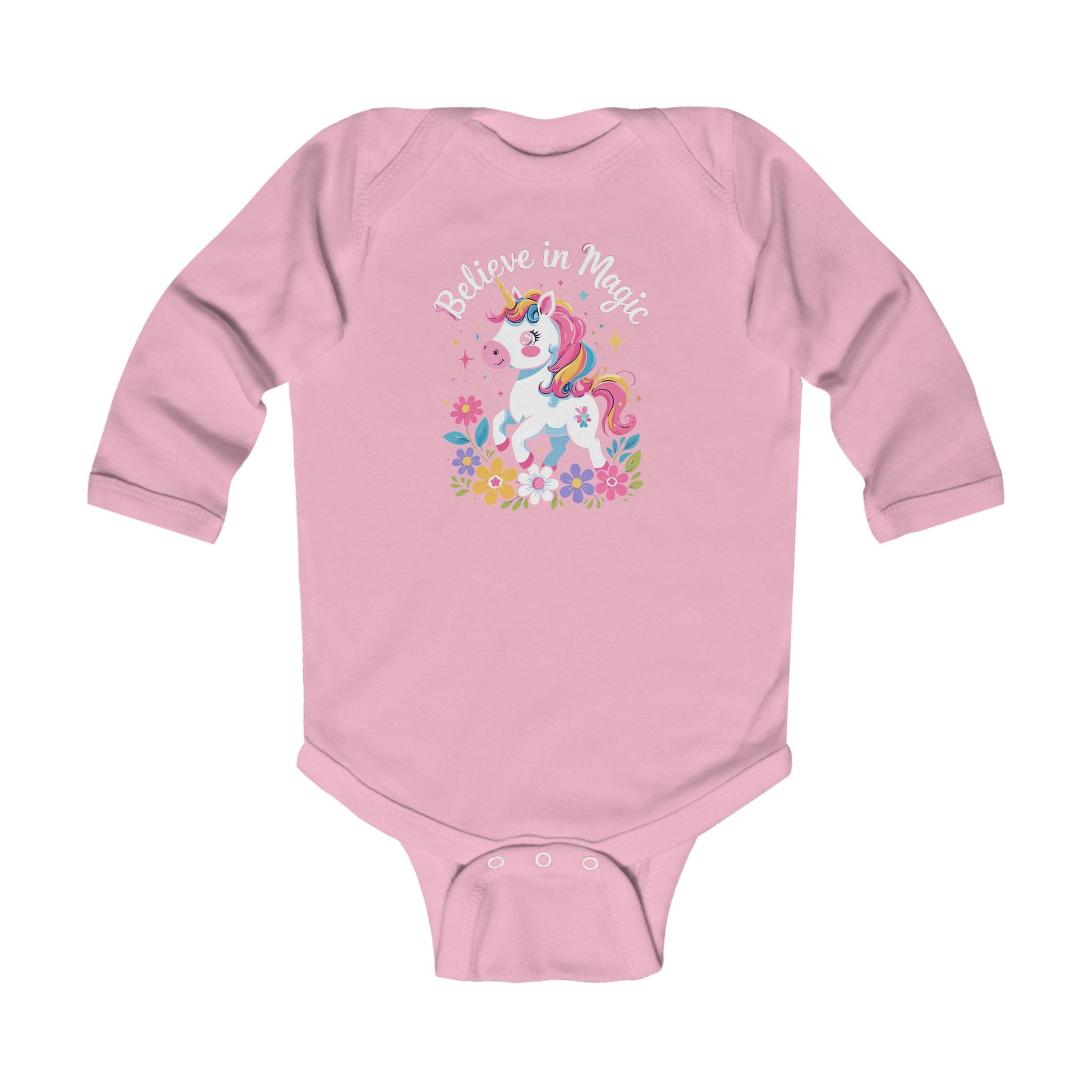 Unicorn "Believe in Magic" Infant Long Sleeve Bodysuit, Pink